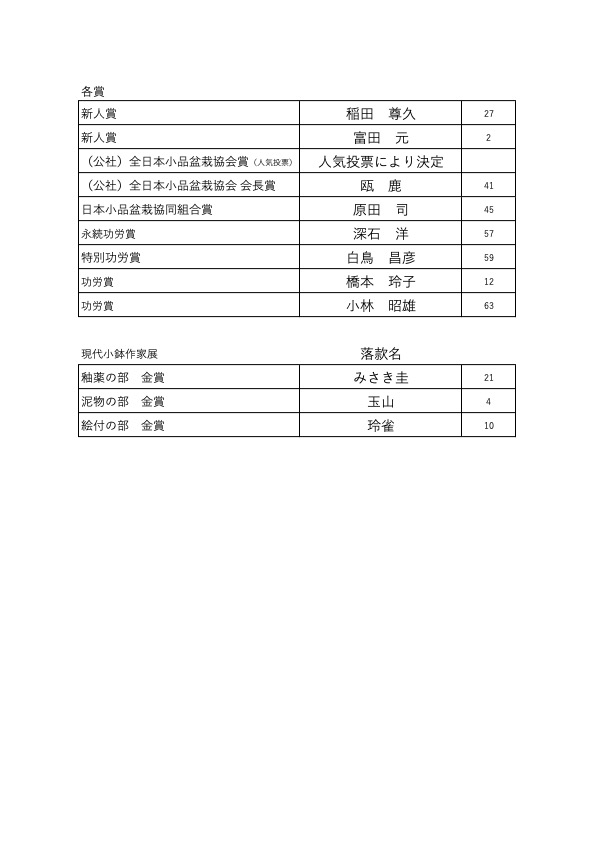 小品盆栽フェア 第33回秋雅展の受賞者を発表いたします。受賞された皆様、おめでとうございました✨