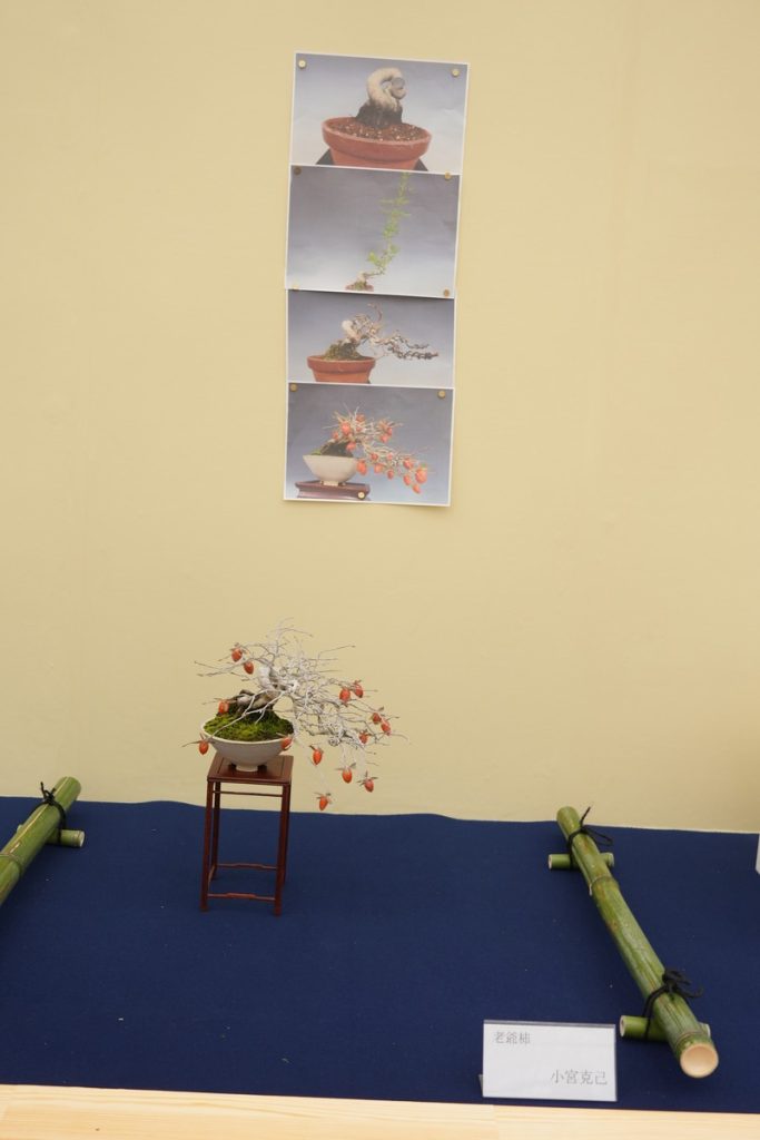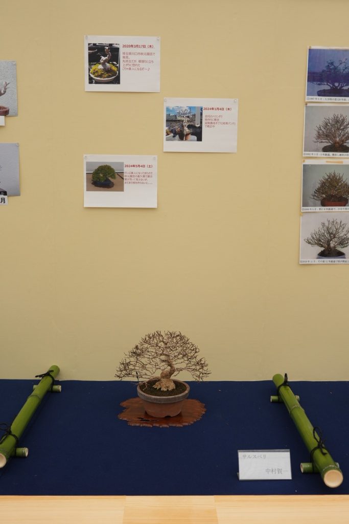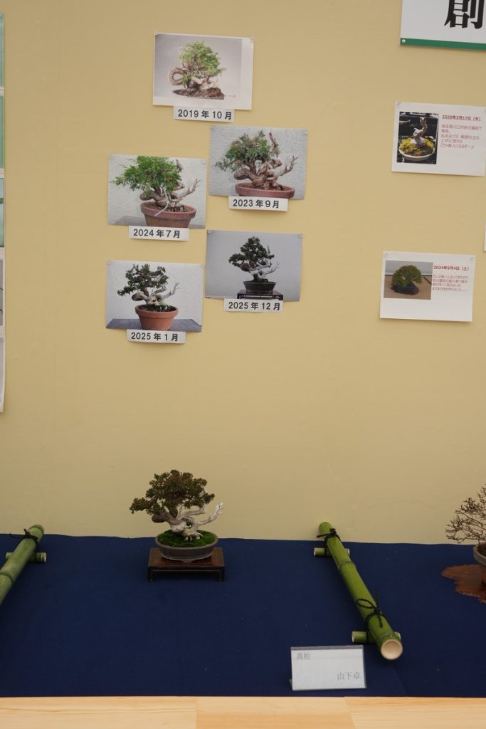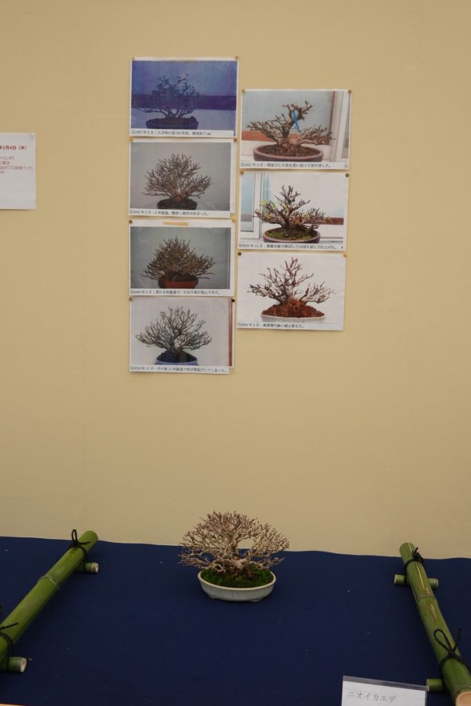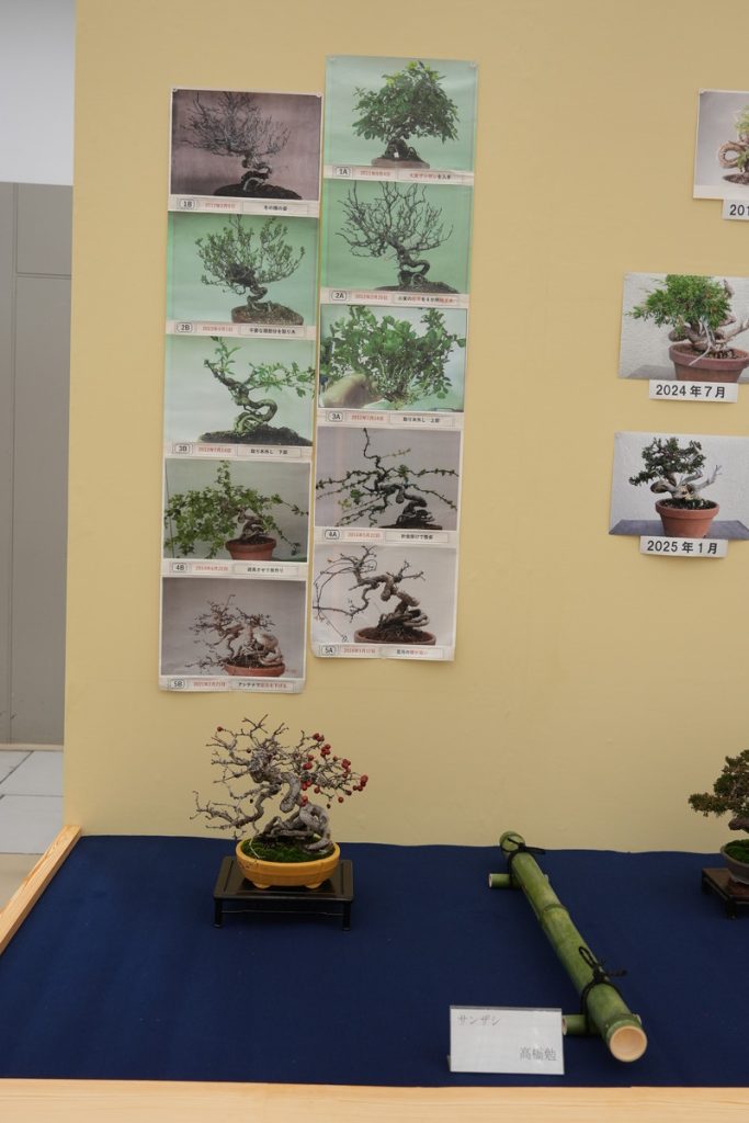 盆栽が現在の形になるまでの記録写真と共に飾られる、貴重な展示です。写真を拡大しながらぜひご参考になさってください。